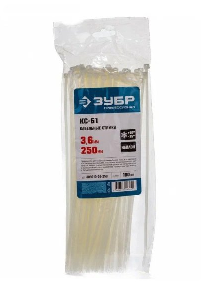 Хомут нейлоновый белый 3.6*300мм. 50шт/упак. Зубр проф.