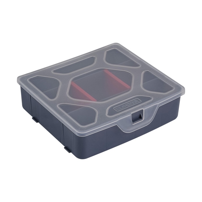 Благодаря эргономичному делению внутреннего пространства на отдельные блоки, хранить можно крепеж различного размера.