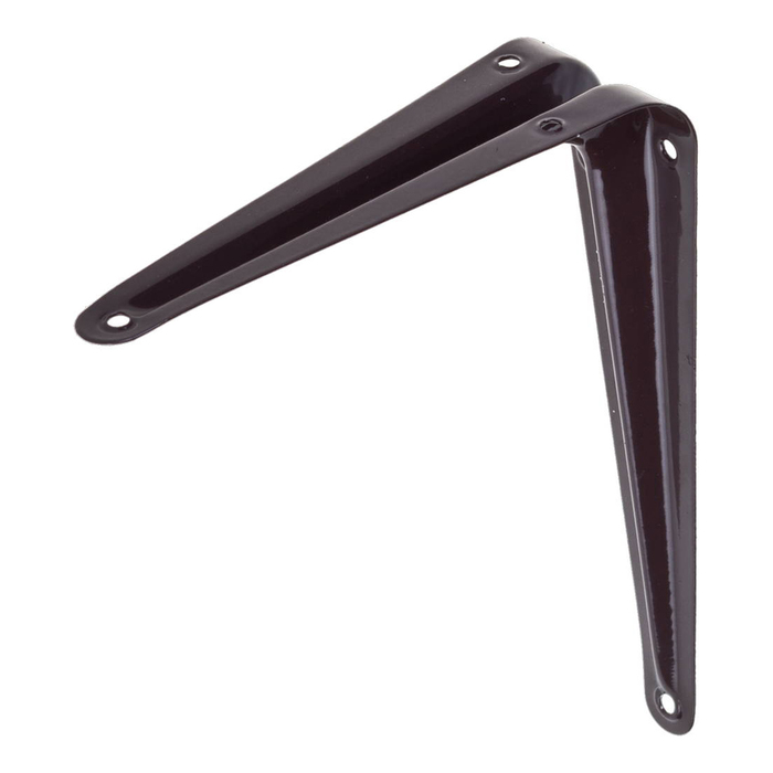 Кронштейн  представляет собой уголок с разными по длине сторонами, зауженными и закругленными концами. На каждом конце, а также на боковых сторонах крепежа, расположены монтажные отверстия . По всей длине уголка проходит сплошное ребро жесткости. Изделие изготовлено из стали. Стойкая и долговечная полимерная краска  защищает его от коррозии и придает кронштейну эстетически привлекательный вид. Кронштейн предназначен для безопасного крепления подвесных полок к стене разного назначения: книжных, для кухонной утвари и инструмента.