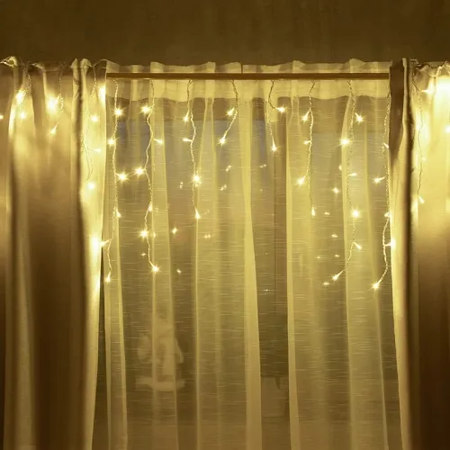 Размер гирлянды 200*60 см, длина провода 300 см. Кол-во светодиодов 48. Кол-во нитей 12 шт. Цвет свечения теплый. Кол-во режимов свечения 8. Цвет провода прозрачный. Степень защиты IP 20. Мощность 2,88W.