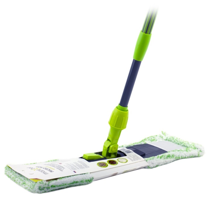 Швабра плоская с насадкой из полиэстера широко используется для сухой и влажной уборки любых напольных поверхностей. Благодаря уникальным свойствам полиэстера сухая насадка легко удаляет пыль и в три раза лучше впитывает влагу, чем обычный хлопок. Подошва швабры складывается, что позволяет легко снять насадку. Прорезиненная ручка удобно и надежно будет лежать в руке, а с помощью телескопической функции вы сможете регулировать длину швабры. Максимальная длина 130 см. Насадка 104 гр
